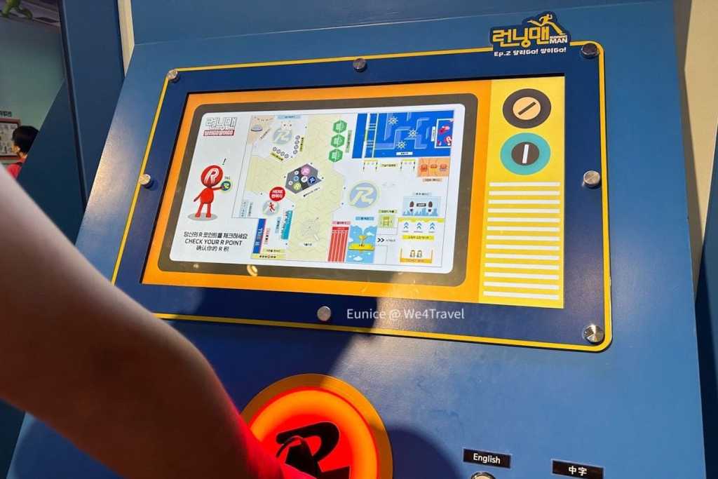 釜山Running Man體驗館分成3個場館,開始每個遊戲前要在紅色R燈登記。完成整個場館的遊戲可以獲得100分(會有特別禮物🎁),場館內有藍色R字的 Point Check 機器可以檢查完成遊戲的情況。