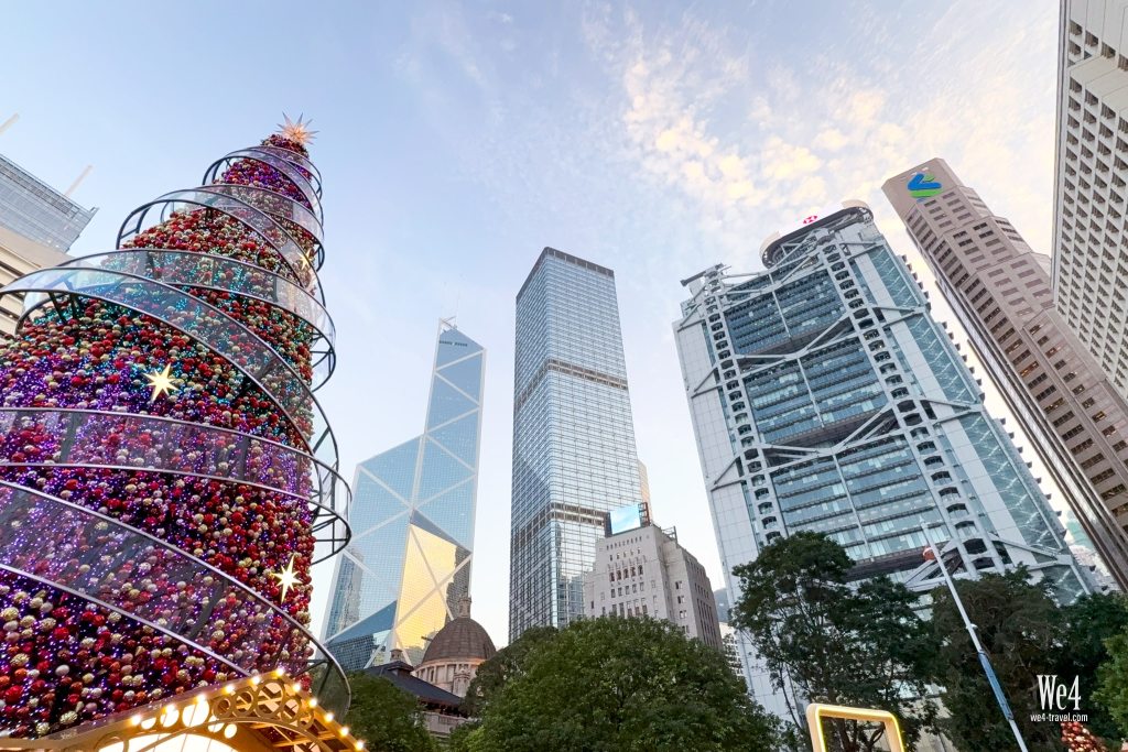 雖然有點想念去年在西九日落下的聖誕樹,不過今年看到聖誕樹在中環鬧市之中還是挺有新鮮感的。