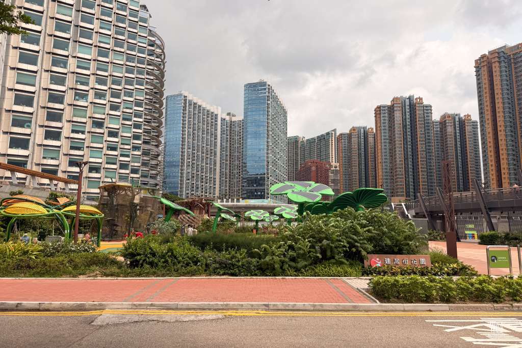 沿海濱長廊走大概5分鐘就會看到「建灣街花園」。有點類似上個月去的將軍澳海濱公園,不過是一個迷你版。