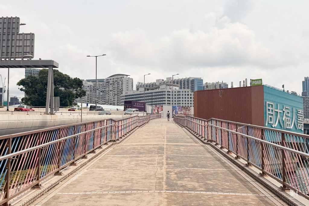 繼續往紅磡方向走一會就會到達天橋的盡頭,轉右往下走就可以進入「紅磡新海濱」。