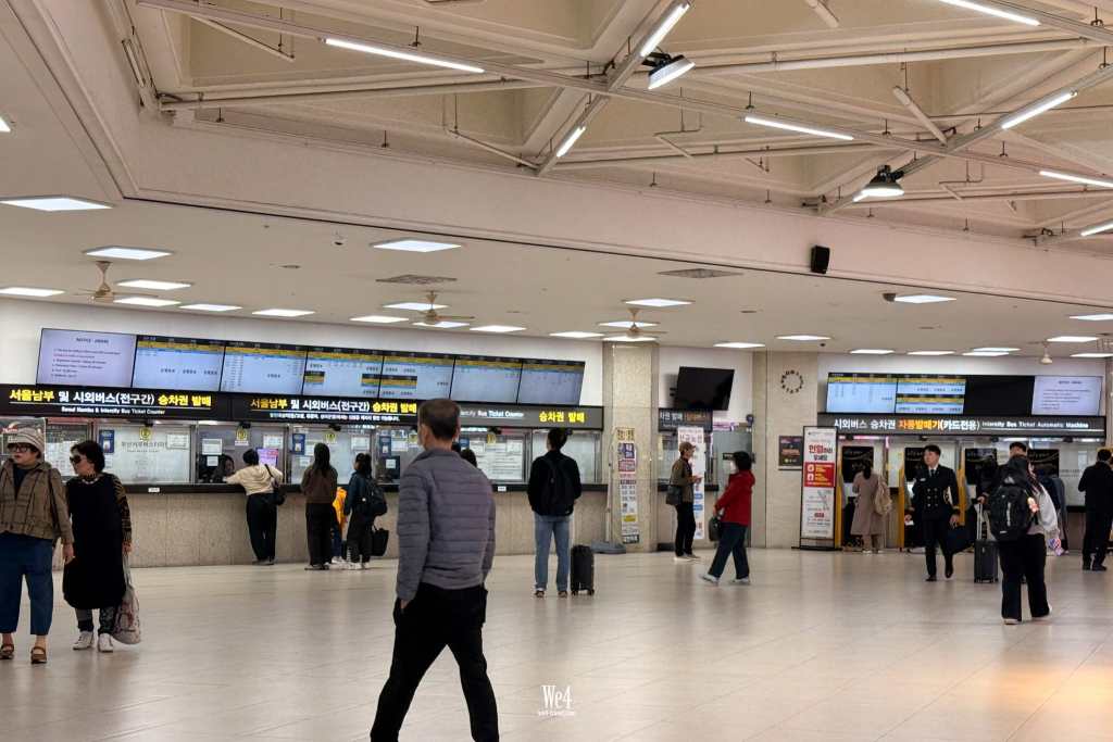 走進去找到買車票的櫃枱,旁邊也有自助售票機,可以刷信用卡。選英文,目的地打 Jinhae (진해) 就可以,車票即日任何班次有效。