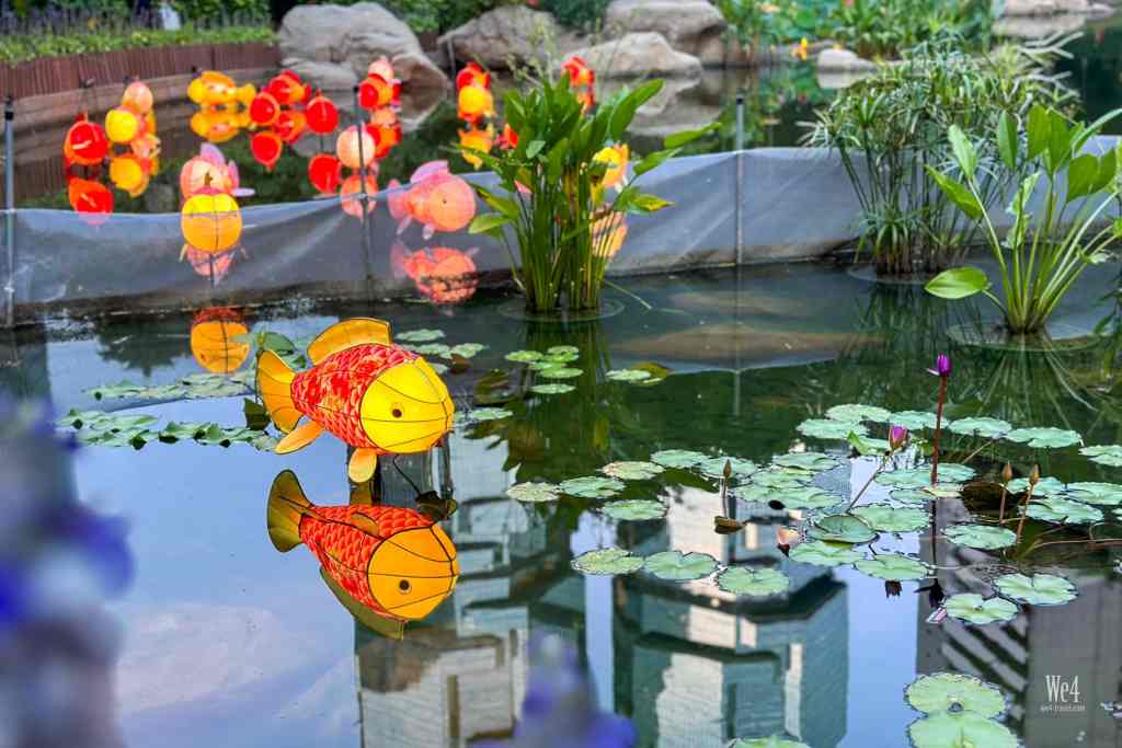 再沿著人工湖走,看到很多不同的形態和顏色鯉魚燈籠,很可愛。