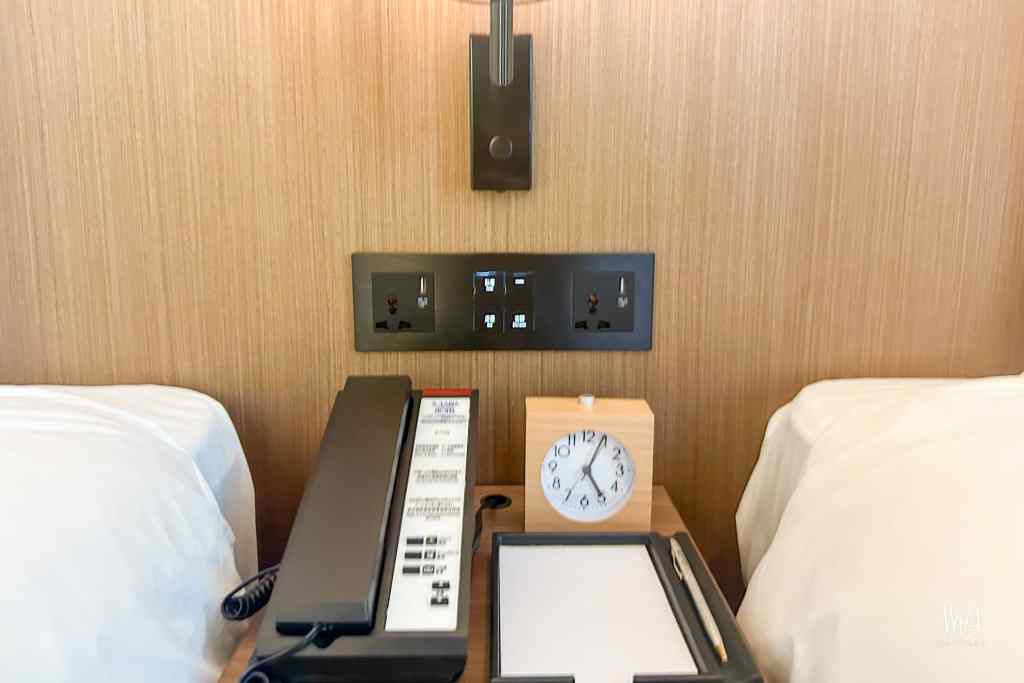 最後再看一下床頭充電的位置~有USB插頭也有3腳的電插頭,香港帶來的3腳插頭可以直接使用,方便!