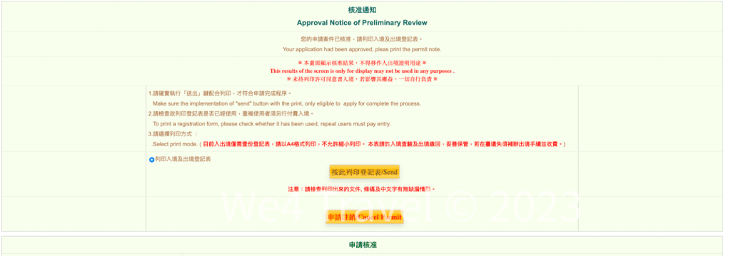 We在申請後立即查閱結果,就見到申請已核準的通知,之後只需列印好入台証就可以安心準備出發台灣了~~!