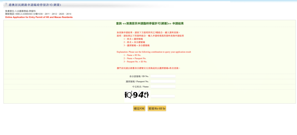 ⬆ 查看申請結果需要填寫(護照號碼/中文姓名/身分證號碼)其中兩項