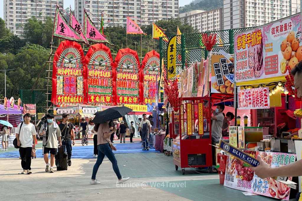 和以往一樣,對「小朋友」來說青衣戲棚就等於「港版夜市」。最吸引我們的就是眾多的小食攤檔。